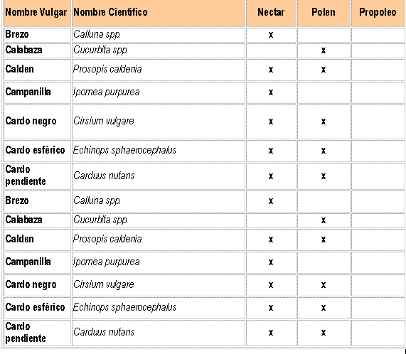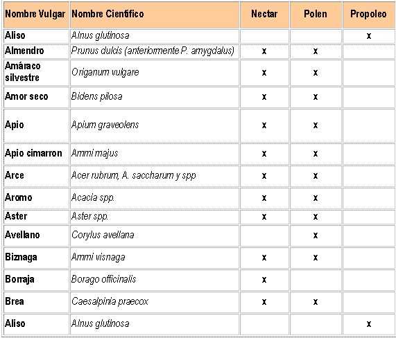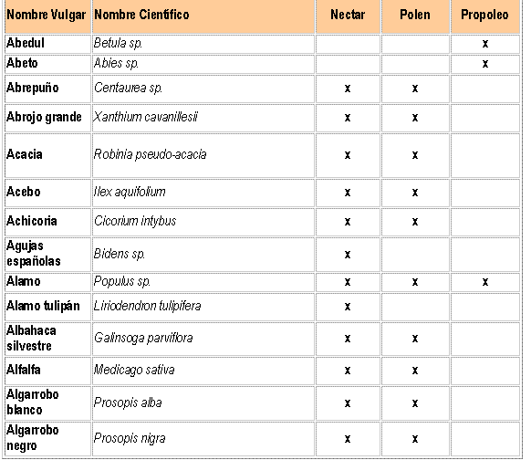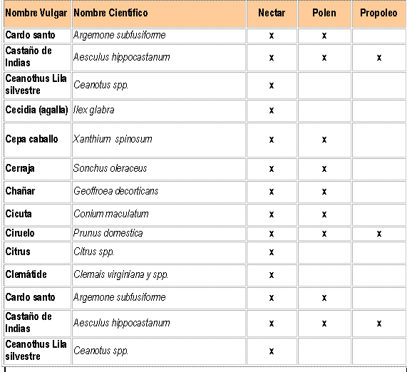 A continuación adjuntamos solo algunos ejemplos de flora apícola disponible: